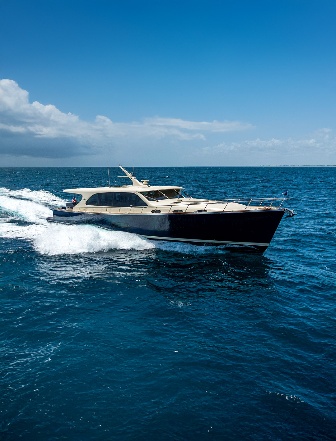 Every Palm Beach Motor Yacht combines form and function, drawing inspiration from the practicality of lobster boats in Maine while prioritizing modern needs for performance, fuel efficiency, comfort, and safety.