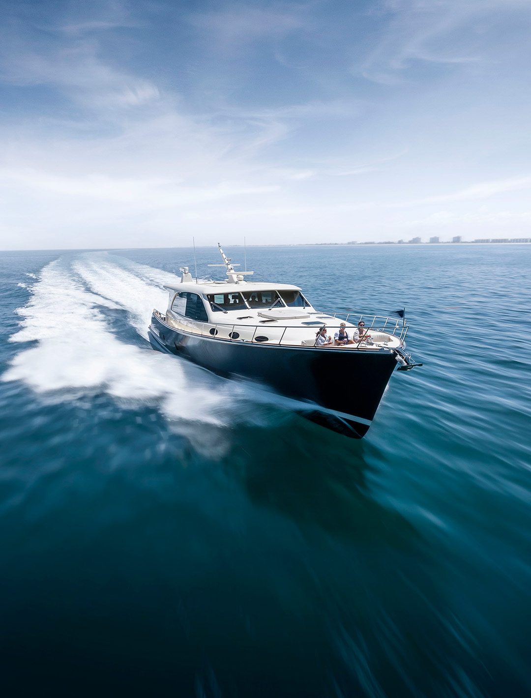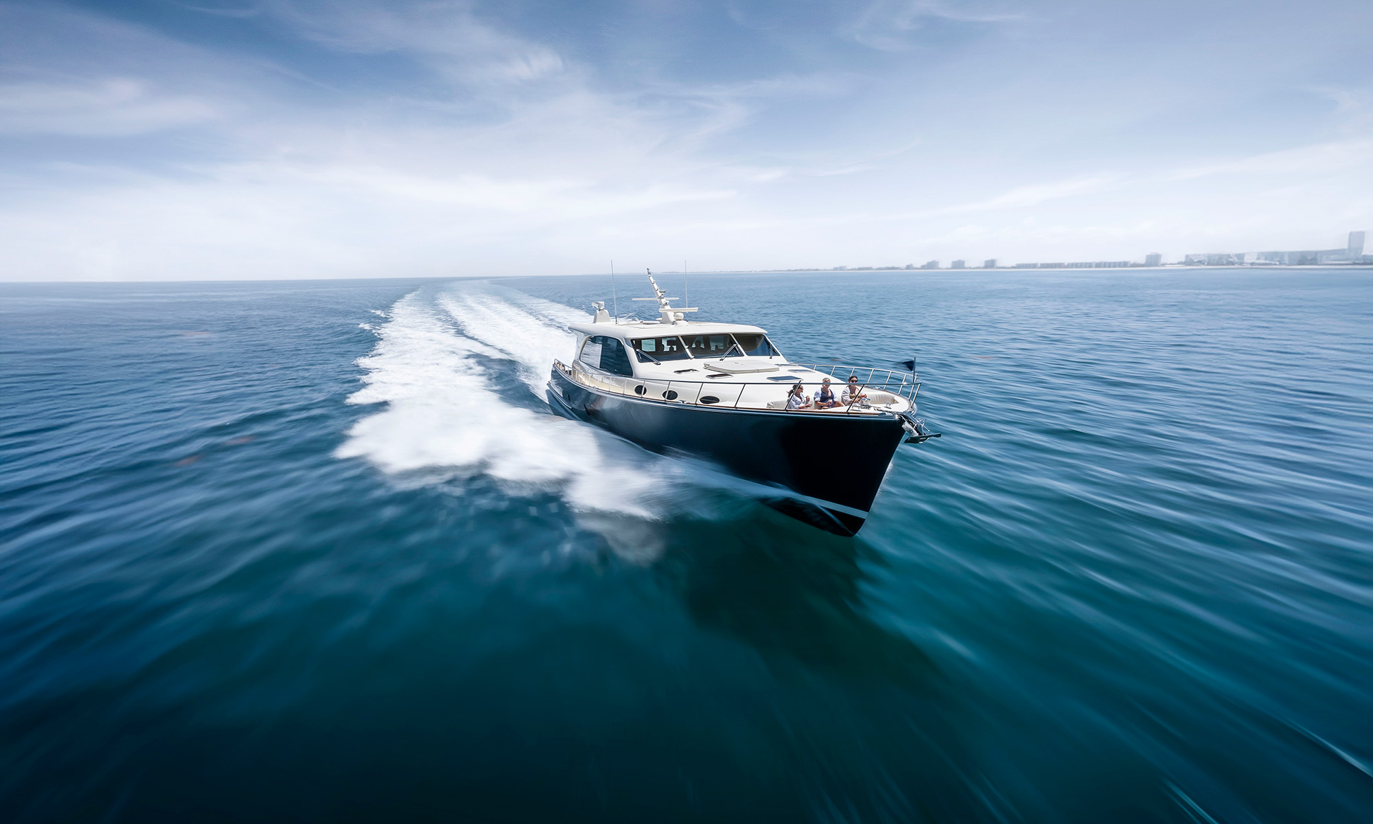The PB85 extends Palm Beach’s design philosophy into a new category of luxury motoryacht. Available in Sedan, Flybridge, and Skylounge configurations, the model offers customizable layouts designed for long-range cruising and entertaining.